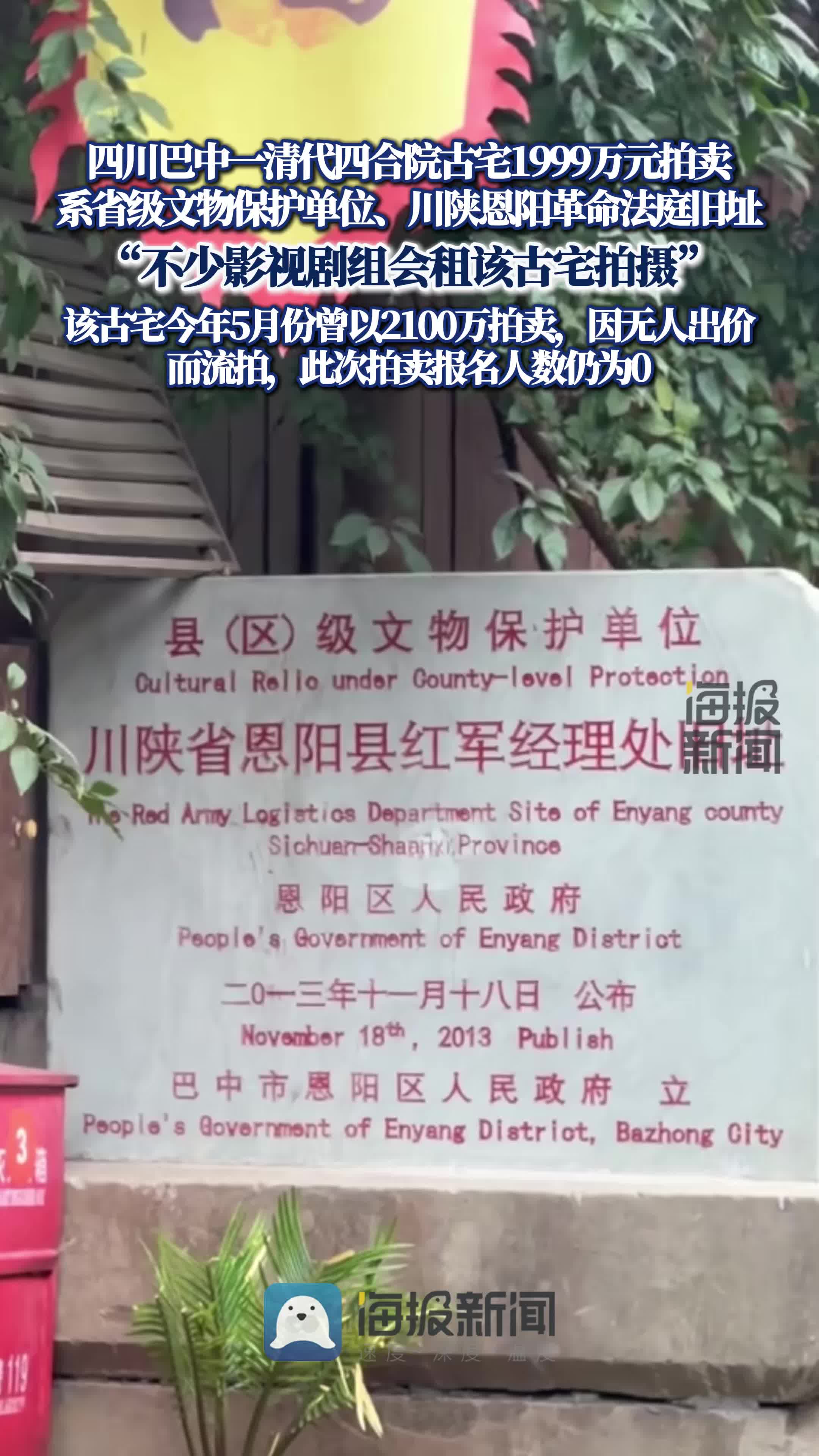 • 四川一清代四合院古宅1999萬元拍賣,該古宅今年5月份曾以2100萬元拍賣,因無人出價而流拍